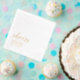 Mit dieser personalisierten Serviette aus Party fügen Sie Ihrem besonderen Tag stilvolle Details hinzu. Dieses Design bietet stilvolle Typografie "Cheers" und Sondertext in Goldfolie-Briefmarke. Sie können die Folienfarbe in Silber oder Rose umändern. Passende Einladungen und Party-Vorräte sind in meinem Shop BaraBomDesign erhältlich.