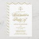 Jurastudien-Party in Gold und Weiß mit einem eleganten Drehbuch mit einem Zickzack Muster. Diese Einladung ist in anderen Farben erhältlich.