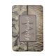 Chic goldene Federn mit einem glänzenden Goldzebradruck in rauchiger, lila Atmosphäre mit einem Quadrat in der Mitte, wo man es personalisieren kann. Glam elegante Farben.