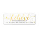 Verwenden Sie dieses hübsche Gold Feve Holiday Address Label um die passenden Urlaubskarten in unserem Shop zu verschicken. Elke Clarke © Bedruckte Goldfolie Effekt auf eine matte Oberfläche. Gold Handschrift Schriftart für das Wort "glauben". Ein weißer Hintergrund mit goldenem Stern Konfetti Muster. Die anpassbare Adresse in grauen Blockbuchstaben.
