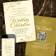 Diese schöne Hochzeitseinladung ist stilvoll, einfach und elegant. Es zeichnet sich durch goldene Schriftzeichen auf einem Elfenbeinhintergrund oder cremefarbenen Hintergrund aus, in jeder Imitat sind filigrane Filigree mit Blumenfolie. Das schlichte Design wird durch die verzierten Falten und Wirbel des Kunstwerks ausgeglichen. Der Rücken ist eine tiefmarmorierte Goldfarbe mit einem individuell anpassbaren QR-Code und Details-Hinweis, sodass Sie Ihre Gäste zu einer Website für Informationen und UAWG.
