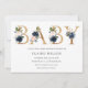 Einladung zur Babydusche mit den Elementen Gold, Blau und Marineblume
