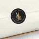 Etiketten Sie Ihre Korrespondenz oder Produkte mit diesen schicken Aufklebern, die zu unserer Floral Scissors Logo Markensuite für Friseursalons und Friseursalons passen. Rich schwarze Aufkleber zeigen in der Mitte ein Imitat mit einer Goldfolienschere, zwei Textfelder kreisen um die Außenseite, in klassischer Weißschrift.