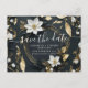 Moderne Vintage, elegante Hochzeitstil-Save the Date Foto-Postkartenvorlage - Eleganter Schwarz-weißer und goldener Blumenreath. Diese Designs können für Ihren Besondere Anlass Personalisiert sein und wären perfekt für Ihre Hochzeit, Brautparty, Engagement Party, Geburtstagsparty und viele weitere Besondere Anlässe.