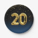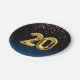 Goldene Mylar-Party-Ballons auf gradientenblauem und schwarzem Hintergrund mit Goldstar Confetti zum 20. Geburtstag oder Jubiläum Party
