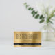 Passen Sie die Größe und die Farben des Schriftartes an. Ändern Sie die Farbe des schwarzen Bar für Ihre Kontaktinformationen. Auf der Rückseite ist viel Platz für weitere Informationen. Der goldene digitale Kunsthintergrund sieht aus wie gebürstetes Metall. Die goldfarbene Metalfolie wird wie ein Foto gedruckt.