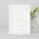Gold Foil on White Fifty and Fabulous Modern Minimal 50th birthday invitation that you can personalize and send out for your fiftieth birthday party celebration. The words "Fifty and Fabulous" are set using trending bold font typography. . Text colors can be changed using the edit menu.