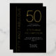 Make a bold statement with this elegant gold foil 50th birthday invitation. Featuring the phrase "Fifty and Fabulous" in sleek vertical text and a dramatic black background, this design adds a luxurious touch to your milestone celebration. The shimmering gold foil accents and modern typography create a high-impact look perfect for a glamorous party.