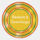 Klassische Goldfolie Weihnachtsaufkleber mit der Begrüßungsbotschaft Ihrer Saison gerahmt von grünen und roten Ringen. HINWEIS: Der Hintergrund der Goldfolie ist nur ein Druckeffekt.