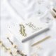 Ein wunderschönes Goldfolie 50 Jahre Hochzeitstag Gästebuch auf schlicht weiß mit einem Blumenblatt vorne und hinten. Die Namen von Braut und Bräutigam sind auf der Vorderseite in Goldfolie sowie in den Hochzeitsterminen.