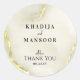 Luxuriöse Gold Foil Marmor Texture Wedding Vielen Dank für die klassischen Round Stickers. Fügen Sie Ihren Gastgeschenke Hochzeiten eine Touch Luxus hinzu mit diesen exquisiten Luxus Gold Foil Marmor Texture Wedding Vielen Dank für Classic Round Stickers. Diese eleganten Aufkleber mit atemberaubender Goldfolie und Marmorstruktur strahlen Opulenz und Eleganz aus. Die Namen der Ehepaare werden elegant in fett gedrucktem Schriftart angezeigt, ebenso wie die herzliche Dankeschön-Nachricht und das Hochzeitsdatum. Diese luxuriösen Aufkleber sind die perfekte Touch für Ihre Gastgeschenke Hochzeiten, indem sie Umschlägen, Geschenktaschen und vielem mehr eine Touch von Königlichkeit und Eleganz verleihen.