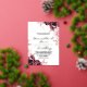Modern stylish dark wedding invitation, pink roses with gold dust on with a gold ink pour effect and modern calligraphy. Classy and elegant, simple and modern invitation.