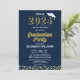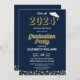 Gold Foil Script Confetti Graduation Party Blue Einladung