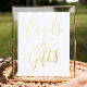 Elegantes Hochzeitszeichen mit der Phrase "Karten und Geschenke" in einem goldenen Drehbuch mit weißem Hintergrund. Personalisieren Sie das Hochzeitszeichen mit Goldfolie mit eigenem Text, wie z.B. Ihren Namen, Hochzeitstag, Dankeschön, etc. Das Schild kann auch für andere Veranstaltungen wie Brautpartys, Babyduschen, Geburtstagspartys und vieles mehr verwendet werden!