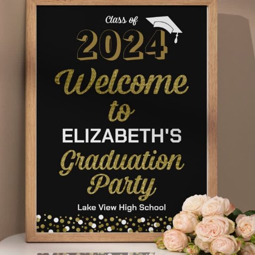 Gold Foil Script S'more Confetti Black Grad Sign Poster