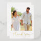 Fügen Sie Ihrer Hochzeitsdankbarkeit eine Touch Eleganz mit dieser modernen Drehbuch Goldfolie Dankeschön Karten. Die Vorderseite bietet einen Platz für Ihr Lieblings-Hochzeitsfest-Foto, mit den Worten "Danke" in der stilvollen Schrift in echter Goldfolie. Personalisieren Sie mit Ihren Namen und Hochzeitstermin in Goldfolie. Die Rückseite bietet Platz für eine individuelle Nachricht und ist somit ein herzlicher Genuss für Ihre Gäste. Ideal für moderne, romantische und elegante Hochzeitsthemen.