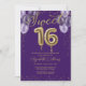 Gold Foil Sweet 16 Birthday Balloons Party Lila Einladung