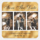 Diese goldenen Fotos können leicht mit eigenen Texten und Bildern Save the Date gestempelt werden. Gold Hochzeit speichern Sie das Datum Foto Collage Quadrat Aufkleber.