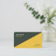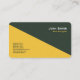 Eine zweifarbige Visitenkarte in goldgrünen und waldgrünen Farben mit vollständigen Kontaktinformationen auf der Rückseite. Diese Farbblockkarte kann für jede Geschäftstätigkeit wie Design, Marketing, Berater, Freelances, CEO, etc. geeignet sein.