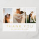 Moderne Wedding Dankeschön Card mit einem einfachen Design mit einem minimalistischen serifenlosen Schriftart und einer Foto-Collage mit Ihren drei Lieblingsbildern. Der gesamte Text auf der Vorderseite ist in echter Goldfolie. Fügen Sie mit der Vorlage Ihre personalisierte Nachricht auf der Rückseite hinzu. Diese schicke und stilvolle Wedding Dankeschön-Karte mit minimalem Design erlaubt es, dass Ihre Fotos im Mittelpunkt stehen.