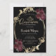 Gold Frame Burgundy Rose Black Quinceañera Einladung