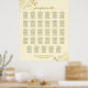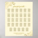 Dieses schöne Hochzeitssitzdiagramm zeichnet sich durch ein schlichtes, aber elegantes Design aus, mit goldenem Text auf einem cremefarbenen oder elfenbeinfarbenen Hintergrund. In den Ecken sind extravagante Imitate-Folientrills oder Blumenfiligrane, und ein Schriftzeichen mit dem Titel "Bitte finden Sie Ihren Tisch." Das Diagramm bietet Platz für 290 Gäste an 29 Tischen (10 Plätze pro Tisch).