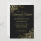 Dieses wunderschöne Hochzeitsessen Probe Dinner besticht durch ein schlichtes und elegantes Design aus Goldtext auf schwarzem Hintergrund mit goldenen Frills und floralen Filigree in den Ecken. Willkommen Mitglieder Ihrer Hochzeitsfeier und besondere Gäste, um an einem Probe Dinner mit diesen prächtigen Einladungen teilzunehmen. Diese Einladung ist vollständig anpassbar, sodass Sie den Text ändern können, um Ihre Situation und Bedürfnisse Anzug. Die Hochzeitssuite Gold Foil Elegant ist für die Koordination mit unserer Hochzeitssuite konzipiert
