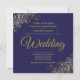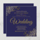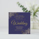 Gold Frills Navy Blue Elegant Square Wedding Einladung