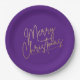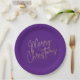 Gold Frohe Weihnachten auf Lila Pappteller