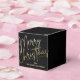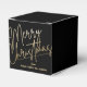 Frohe Weihnachten in einem Imitat goldene Folienskript und Ihre Namen in schicken Schriften, umhüllt diese 2" quadratischen schwarzen Boxen, eine stilvolle Art, Feiertagsgunst oder Geschenke zu verpacken.