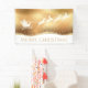 Das Gold Merry Christmas Santa Reindeer Silhouette Banner zeigt einen skurrilen Weihnachtsmann mit seinen Rentieren, die durch den Nachthimmel fliegen, mit dem Text "Frohe Weihnachten" in der modernen Goldschrift unten. Entworfen von ©Evco Holidays www.zazzle.com/store/evcoholidays