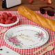 Gold Frohe Weihnachtstext mit Poinsettias und Pine Pappteller