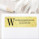 Zwei Schichten Gold-Designelemente schaffen ein elegantes Retourenlabel. Der erste ist ein glatter gelb-goldener Hintergrund. Das zweite sind zwei goldene Schnörkel, die das große Monogramm und den Namen und die Adresse umrahmen. Raffiniert und elegant. Perfekt für Dankeschön Noten, Einladungen und gute Wünsche. Es ist auch ideal für Hochzeitseinladungen, 50. Hochzeitstag und Karten. Einfach anzupassen.