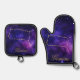 Gold Gemini Sternbild auf der Dunkelgalaxie | Ofenhandschuh & Topflappen-Set