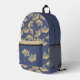 Gold Gingko Blätter auf Slate Blue Monogram Bedruckter Rucksack