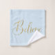"Glauben" in Gold und extravagante Schrift auf winterblauem Hintergrund