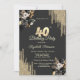 Gold Glitter Drips Black Roses Dark 40th Birthday Einladung
