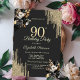Gold Glitter Drips Black Roses Dark 90th Birthday Einladung