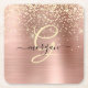 A trendy design of faux brushed rose gold metal background and gold glitter with gold monogram and black script name.