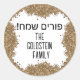 Gold Glitter Happy Purim Hebrew Custom Name Runder Aufkleber