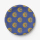 Gold Glitter Moon and Stars Pattern on Blue Pappteller