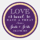 Die perfekte Touch für eine Gastgeschenk Hochzeit, dieses Imitat mit goldenem Glitzer und Pflaumenrundaufkleber mit Namen und Hochzeitsdatum sowie eine süße Botschaft der Liebe. Dieses Label ist eine schicke und moderne Mischung mit etwas Funkeln und würde gut auf Gläsern, Kisten, Pfefferminzfäden aussehen und sogar ein verpacktes Paket nah. Vergessen Sie nicht, Ihren Namen, Ihr Veranstaltungsdatum zu personalisieren und die Hintergrundfarbe zu einer Ihrer Wahl zu ändern, indem Sie auf den Button "Anpassen" klicken.