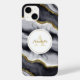Dieses elegante Schwarz und Grau mit goldenen Imitate Glitzer Design sieht atemberaubend auf diesem iPhone 14 Gehäuse, bereit für Sie mit Ihrem Namen und Initial personalisieren. Dieses stilvolle Gehäuse würde auch ein tolles Geschenk für einen Freund oder einen Liebsten machen.