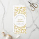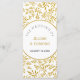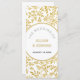 Gold Glitzer Blätter Muster Trauung Zeremonie und Party-Programm. Dieses wunderschöne Hochzeitsdesign zeigt ein Muster aus goldenen Blätter und Ihren Text in einem runden weißen Rahmen mit goldener Kontur.
