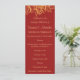 Ein elegantes, blumengeschmücktes Hochzeitsprogramm mit einem Strauß goldener Blume und Blätter ganz oben auf einem roten Sockel. Alle Details auf beiden Seiten der Karte können leicht an den Anzug personalisiert werden. Auf der Rückseite befindet sich ein Goldbukett aus Single ganz unten. Dieses stilvolle und zeitgenössische Hochzeitsprogramm ist Teil einer kompletten, passenden Hochzeitssuite, die Sie hier in vollem Umfang sehen können: https://www.zazzle.com/collections/gold_glitter_floral_sparkles_red_wedding-119325129141873468