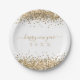 Gold Glitzer Borders Script glücklich Neues Jahr Pappteller