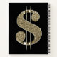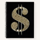 Ein mutiges, goldenes 3D-Dollarzeichen macht dies zu einem großartigen Notizbuch für all Ihre Geldgedanken, -noten und -gedanken.