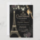 Gold Glitzer Eiffel Tower Black Rose Quinceañera Einladung