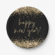 Gold Glitzer Elegante Script glücklich Neujahr Sch Pappteller
