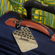 Ein exotischer, brauner und blasser Imitat Pelzgiraffenprint mit einem Goldband, in dem Sie ihn individuell gestalten können, um ihn zusammen mit einem vergoldeten Glitzer für extra Glanz zu einem einzigartigen Ganzen zu machen. Tierische Chic-Villen.